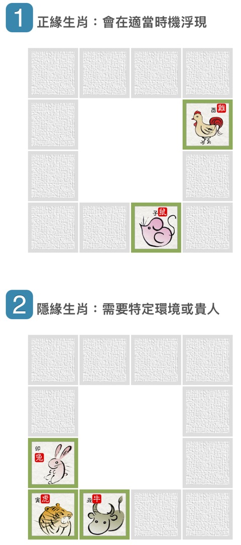 以她的個案來說,雞、鼠是正緣,而牛、虎、兔,是隱緣。