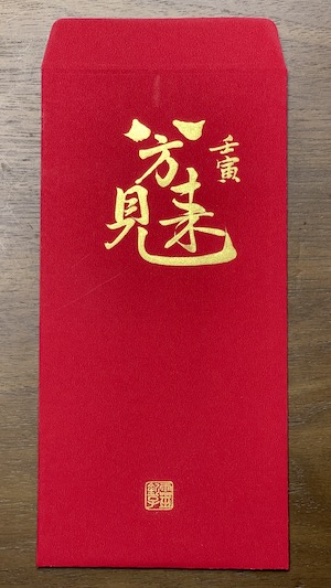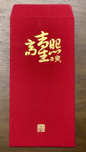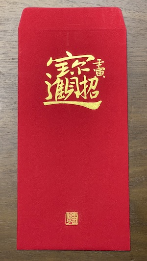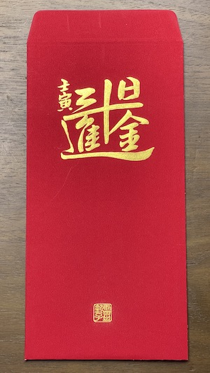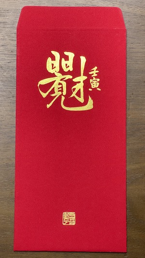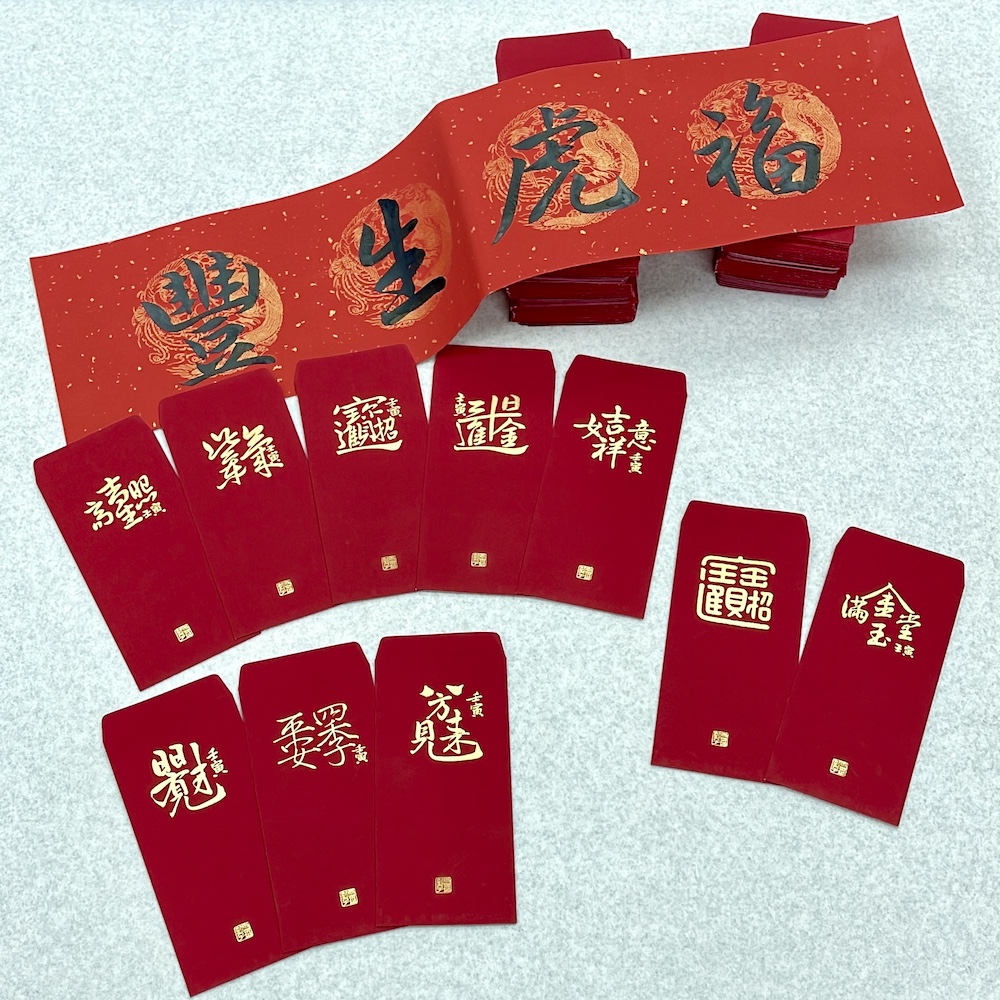 - 每一張都經過靜心、書寫、9999金箔鈐印、開光等等步驟,至少 10-15 分鐘才能完成一張,聚精會神的過程寫幾張就得休息,比往年耗費的時間更久,數量也比去年少。每一張紅包袋都是為了服務會員而生。
