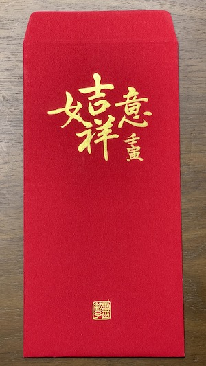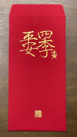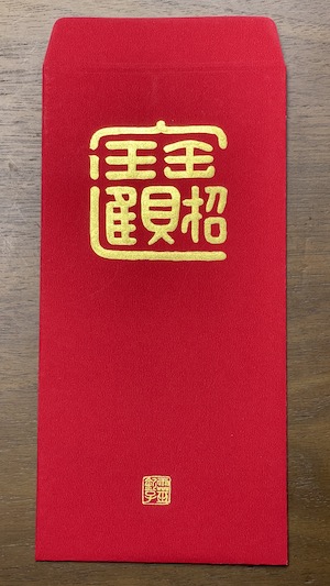 關注老師 粉絲專頁 的會員都知道老師練了一整年的書法與篆刻,所以今年的開運祈福紅包袋又更美了,不僅能寫各式各樣的紅包袋,還能寫掛軸、書法作品!而這個紅包袋上的靈欽子落款章,也是前幾天特地重新刻的。